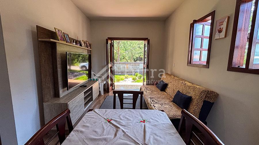 O imóvel conta com dois quartos, um banheiro, sala e cozinha integradas, criando um ambiente funcional e acolhedor, além de área de serviço que traz mais organização ao dia a dia.