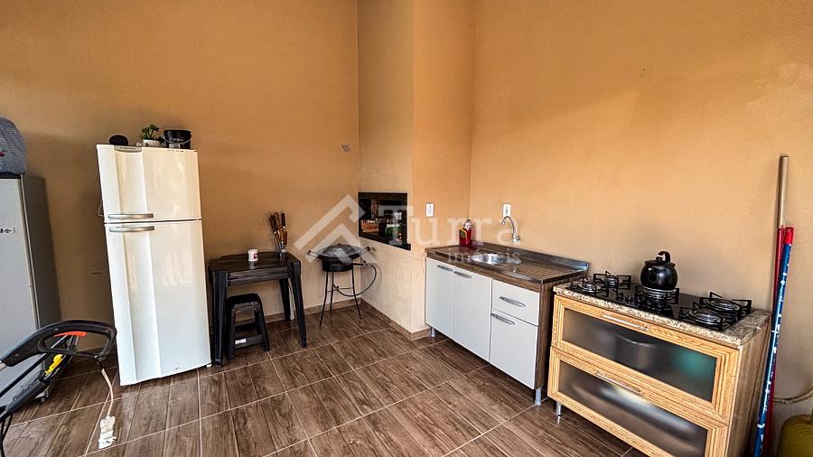Nos fundos, o destaque fica para a área gourmet com churrasqueira, ideal para momentos de lazer e confraternização com família e amigos.
