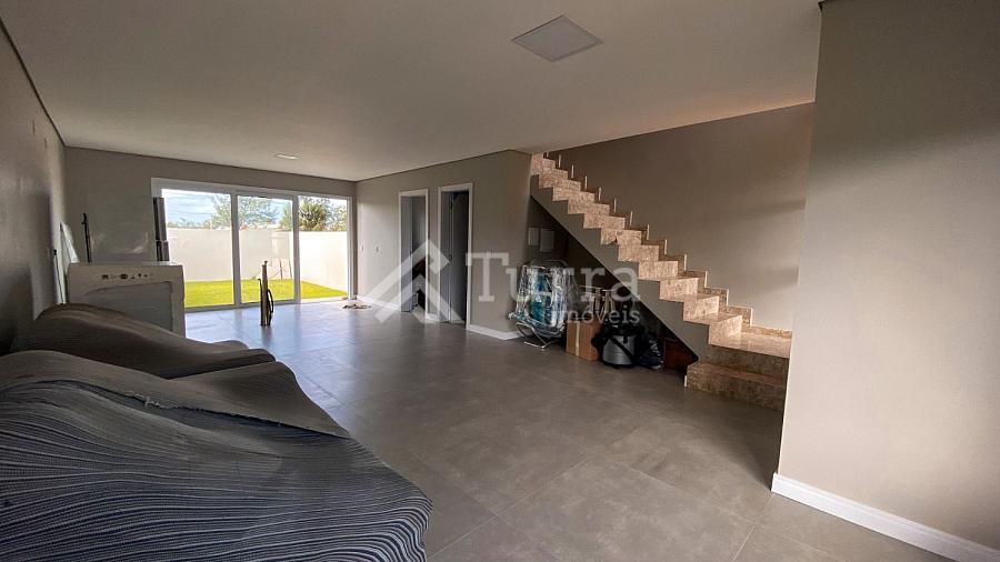 Ao entrar nesta casa, você será recebido por uma pequena sala de estar, harmoniosamente integrada à cozinha, criando um ambiente acolhedor e convidativo para momentos de convívio e descontração. A disposição inteligente desses espaços proporciona funcionalidade e praticidade para o dia a dia da família.